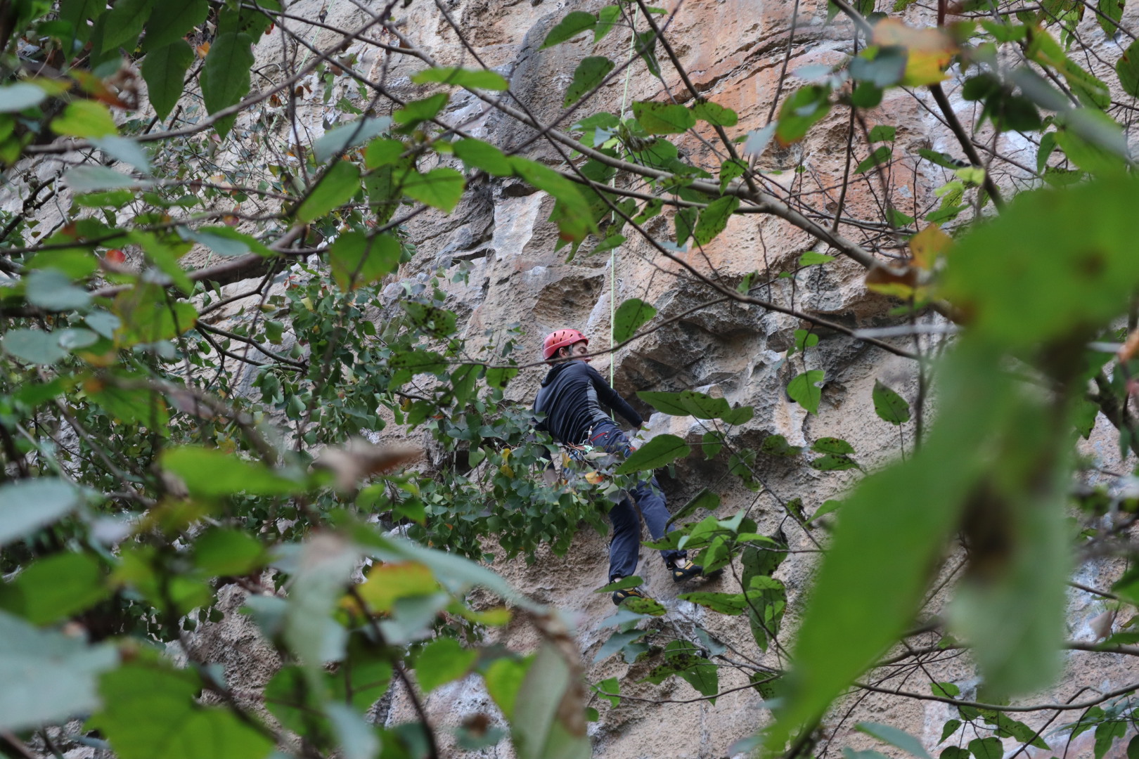 – The egg, grimpe sous la pluie, voies en dalle à goûtes d’eau jusqu’au 6c et toit énergique dans le 7a.