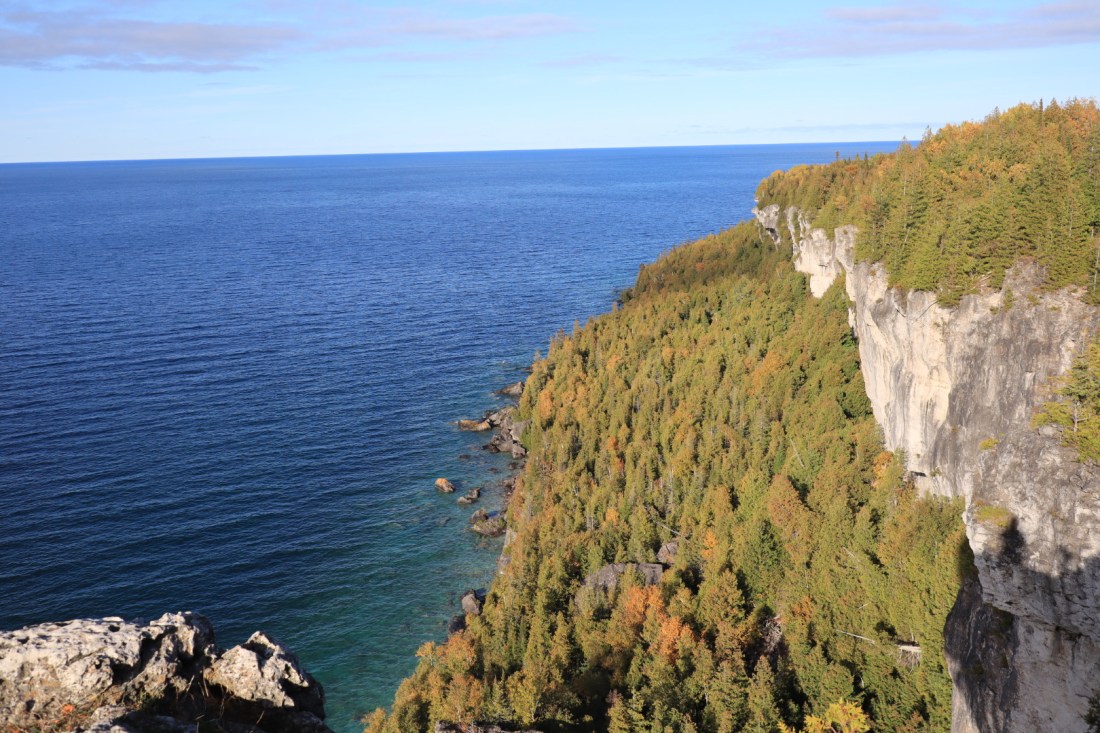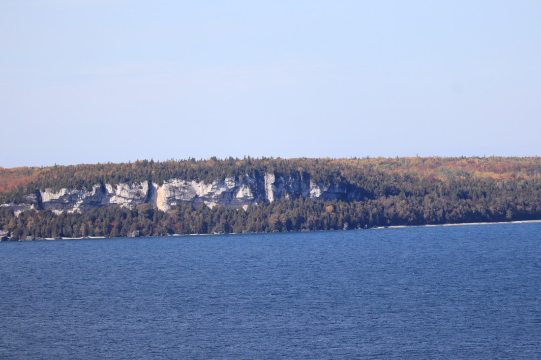 Lorsque le froid et la pluie arrive, nous déplaçons nos quartiers pour le sud de l’Ontario. Sur les rives du lac huron plus précisément. Au revoir le granit, rebonjour le calcaire. Premières voies à Lion’s Head. Un paysage superbe, de belles lignes, mais une falaise orientée NORD…