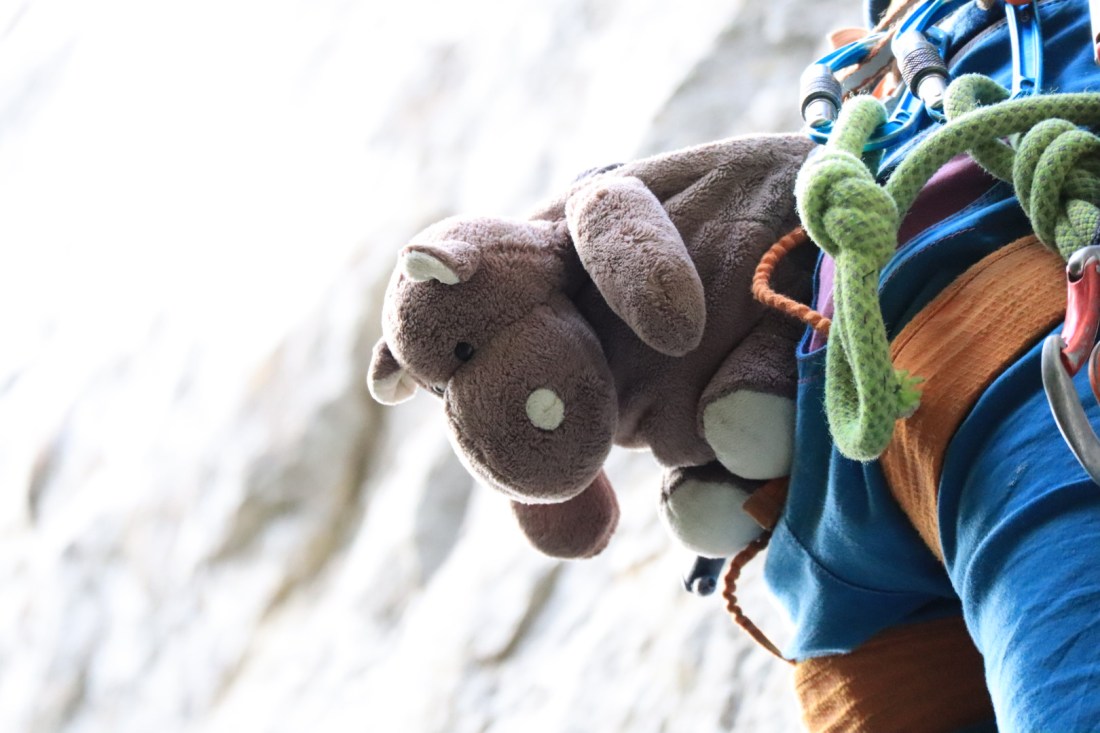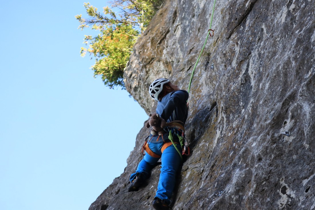 Cette fois, la falaise regarde le soleil (quand il y en a) et la technique de l’oignon (2 t-shirts, 1 couche en mérinos, 1 polaire, 1 doudoune) augmentent l’autonomie de la grimpeuse. Les sensations reviennent et le plaisir de la verticalité aussi.